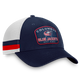 Columbus Blue Jackets trucker cap with stripes. This Fundamental Striped cap from Fanatics Branded is just the hat for you. It features incredible graphics highlighting when the team was established. The trucker design and snap closure will give you a super comfortable fit all game long.