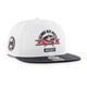 Columbus Blue Jackets white snapback. This cap has a structured crown, flat visor, and an adjustable snapback with raised embroidery on the front. Made from Wool Blend material.